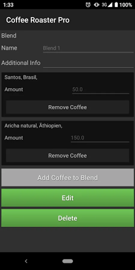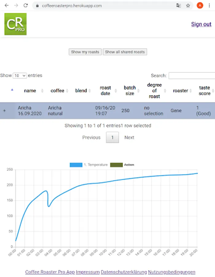 If you like roasting coffee beans by yourself you probably take some notes during the roast process (roast duration, temperature, time of cracks,...). This tool helps you to record this data and to store (and view, edit, delete) it.