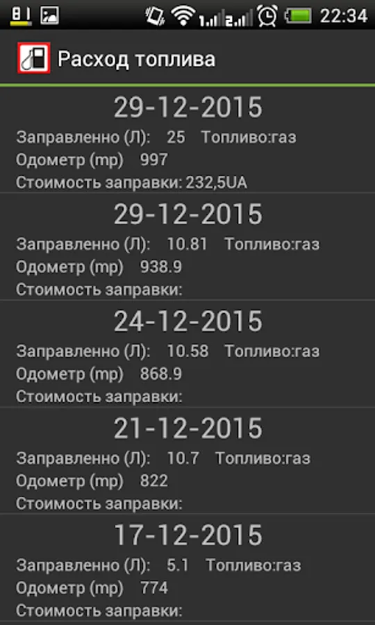 Расход топлива Screenshots