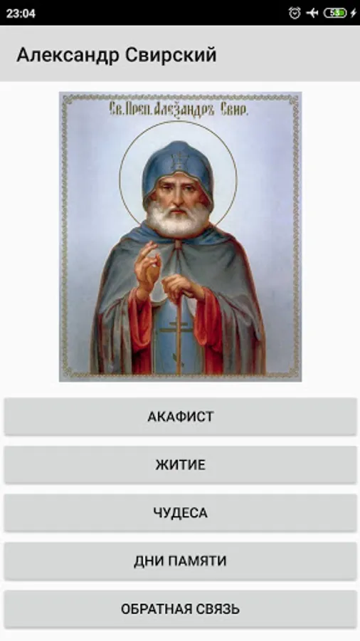 In the appendix you will find the akathist, life and miracles of the Monk Alexander of Svir.
