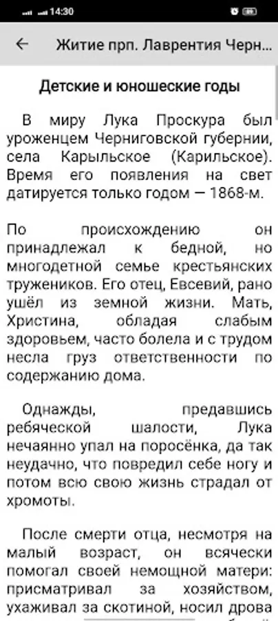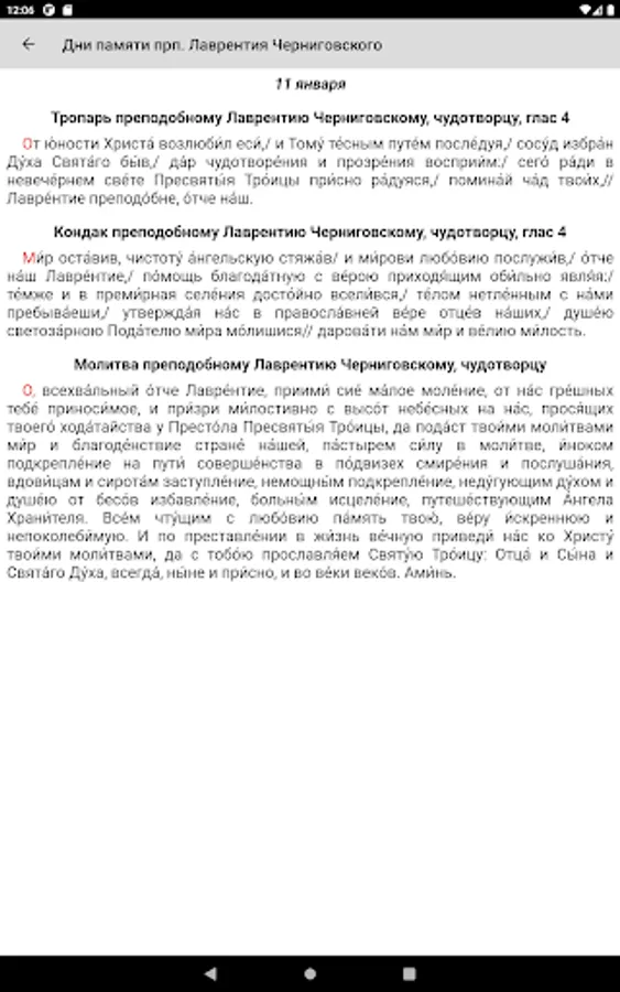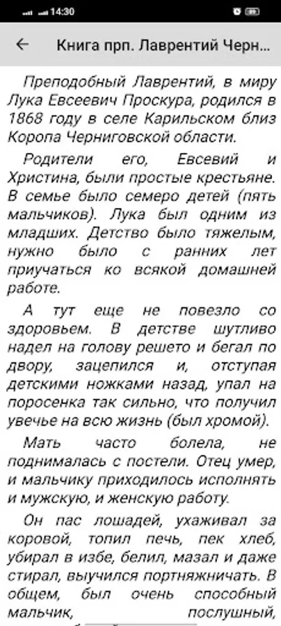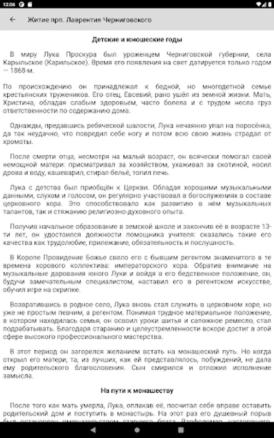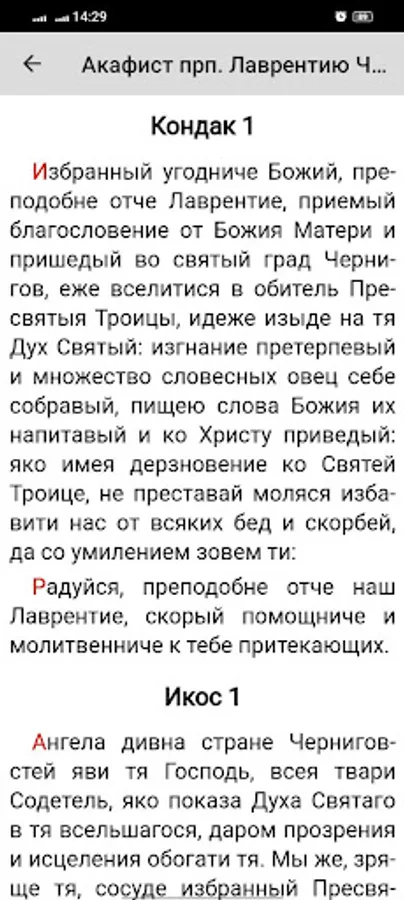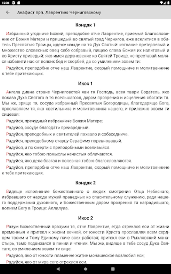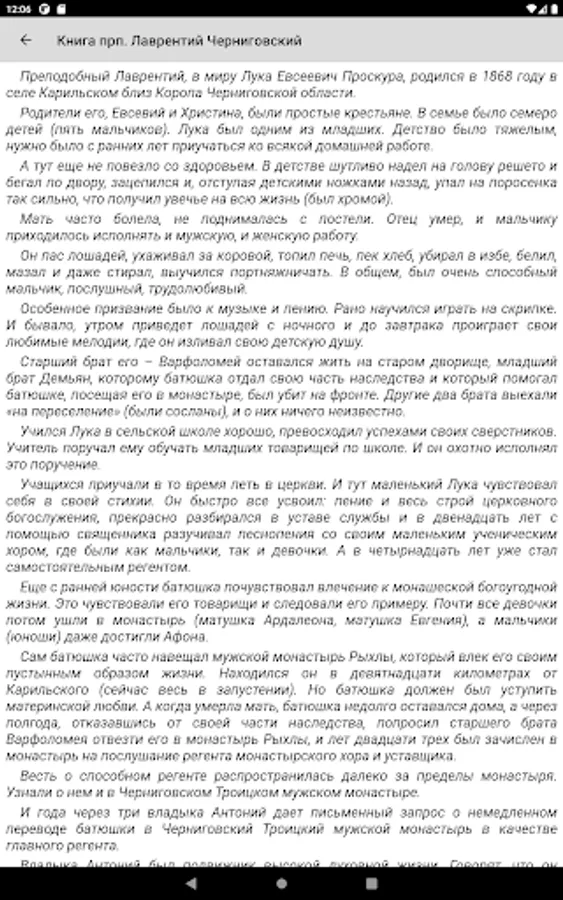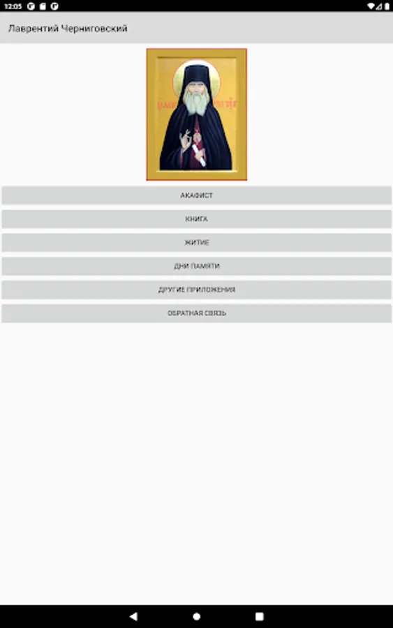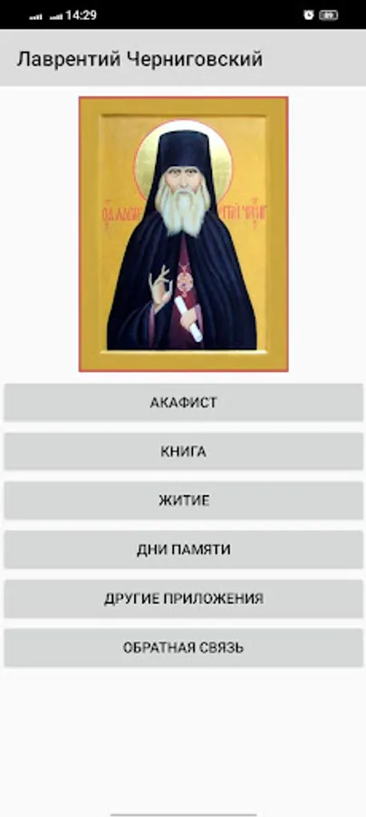 The application contains a life, an akathist and a book with memories of Elder Lawrence