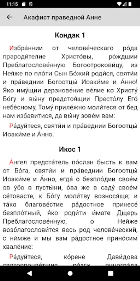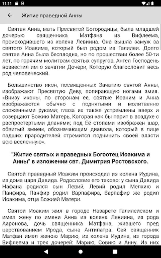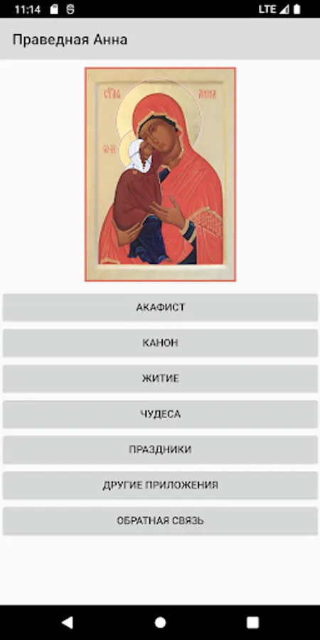 Приложение содержит акафист, канон, чудеса и житие праведной Анны, матери Пресвятой Богородицы