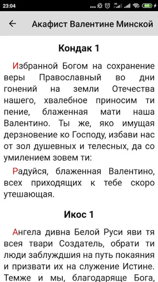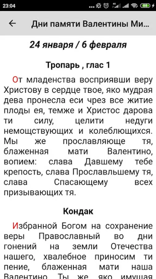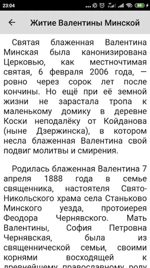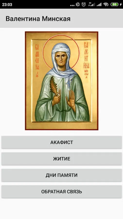 The application contains an akathist and the life of blessed Valentina Minskaia.