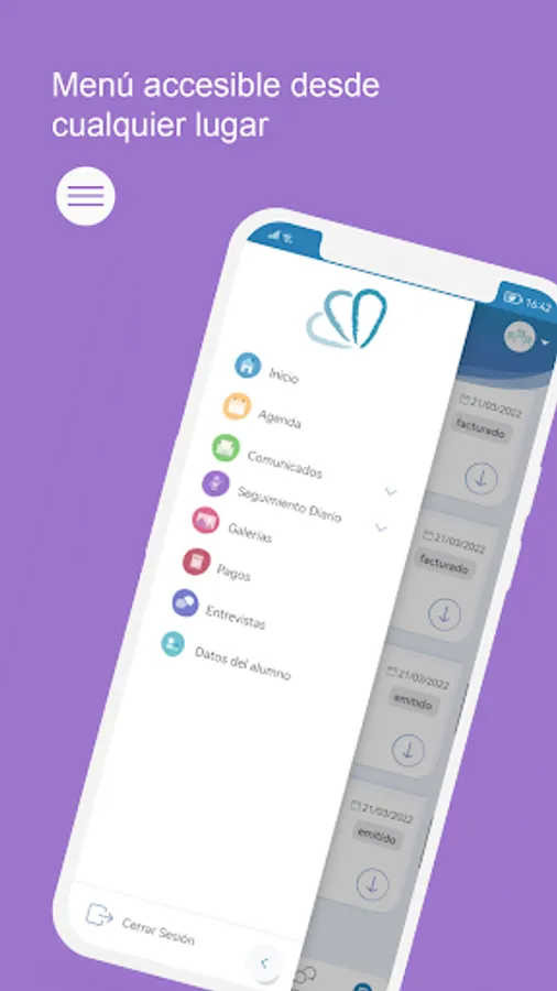 REMEMBER! This app is only available for families if the center has it activated. To access it, you need a code that your educational center must provide you. Check with your center for further information.
