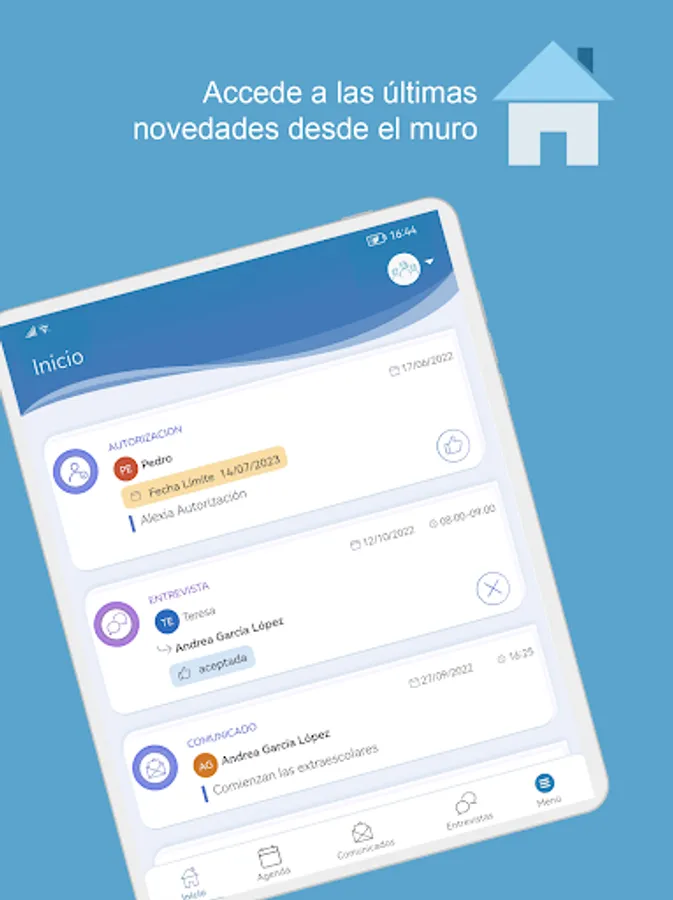 Alexia is the leading management platform for educational centers in Spain, and a powerful communication tool for the center with families, designed so that you can follow your children's school life in real time. Its new app for families is a very intuitive tool for communication with the educational center, thanks to its new design, very visual and focused on usability. From its main screen you will have access to all the information published by the center, and its simple menu allows you to quickly access the most used functionalities. Your agenda is one of the most outstanding new features. At a glance you can see everything that the students have planned: schedule, events, authorizations, etc. Also, daily information - assignments, activities, grades, etc. – Easily accessible and very well organized, it allows quick monitoring and immediate response to the center. Another of the great improvements is found in the communication tools, which favor a much more fluid and dynamic interaction with the educational center. The possibility of grouping communications in conversations, filters or new galleries are some examples. A new and complete management of the dining room will soon be available, which will allow you to process registrations and cancellations, consult the menu and access all the information on this service.