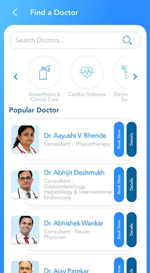 Through this app patients can book appointments, view lab reports and know more about our specialist physicians and surgeons. They can also use the app to make payments, set appointments through WhatsApp, view ongoing campaigns, and get notified about their upcoming appointment.