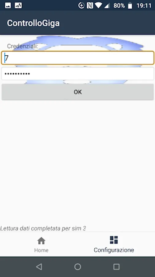 Here you need to enter the user code and password with which you connect to the iliad.it site which will then be safely saved in the local memory of the phone.
