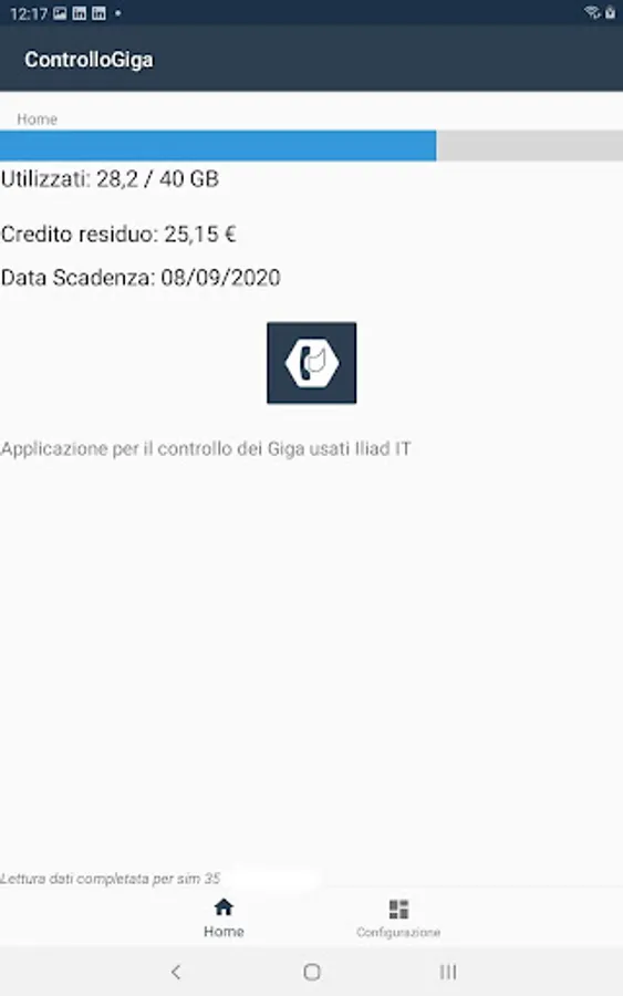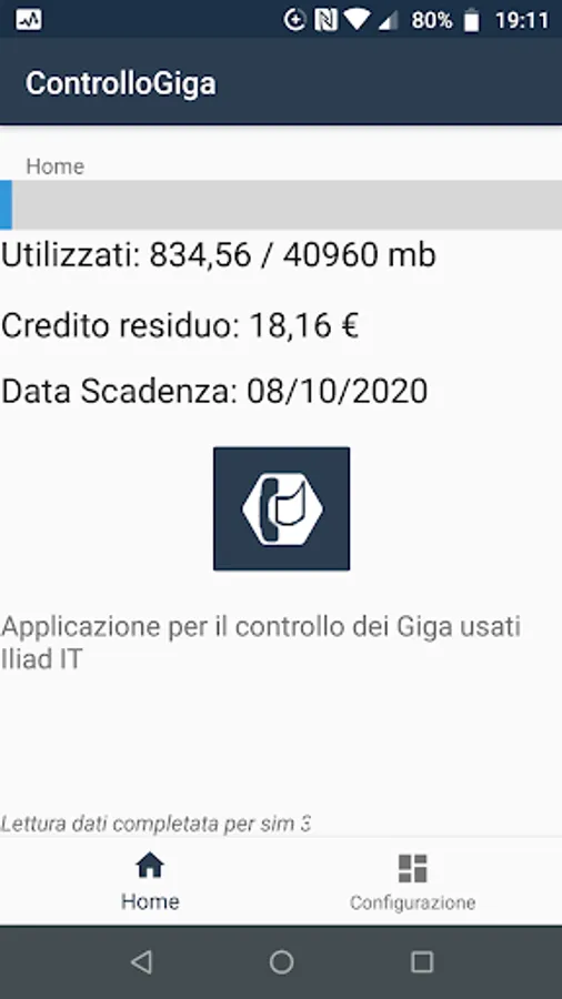 Minimalist style application to check the data consumed on your Italian ILIAD SIM.