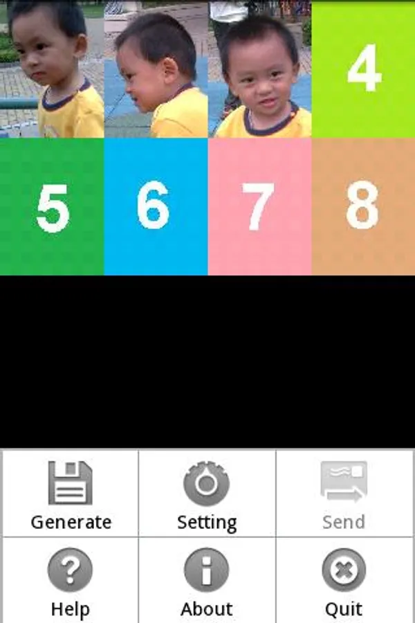 This application allows you combining 8 photos to form a single funny photo.