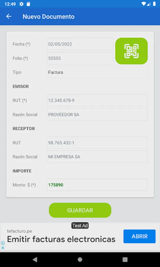 Register your purchase invoices on your device, either through manual registration or by reading the barcode or electronic stamp of the document.