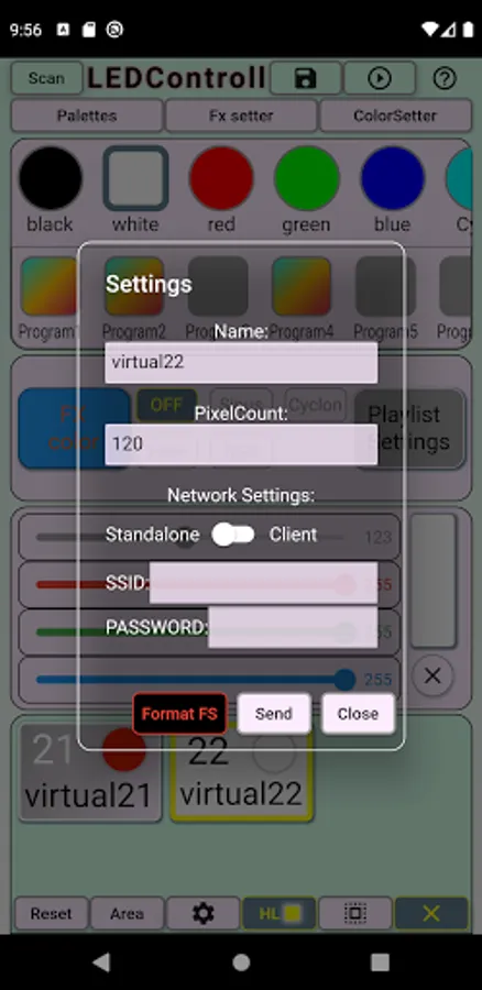 - recording playlist of stored scenes into microchip ESP8266 for playing back