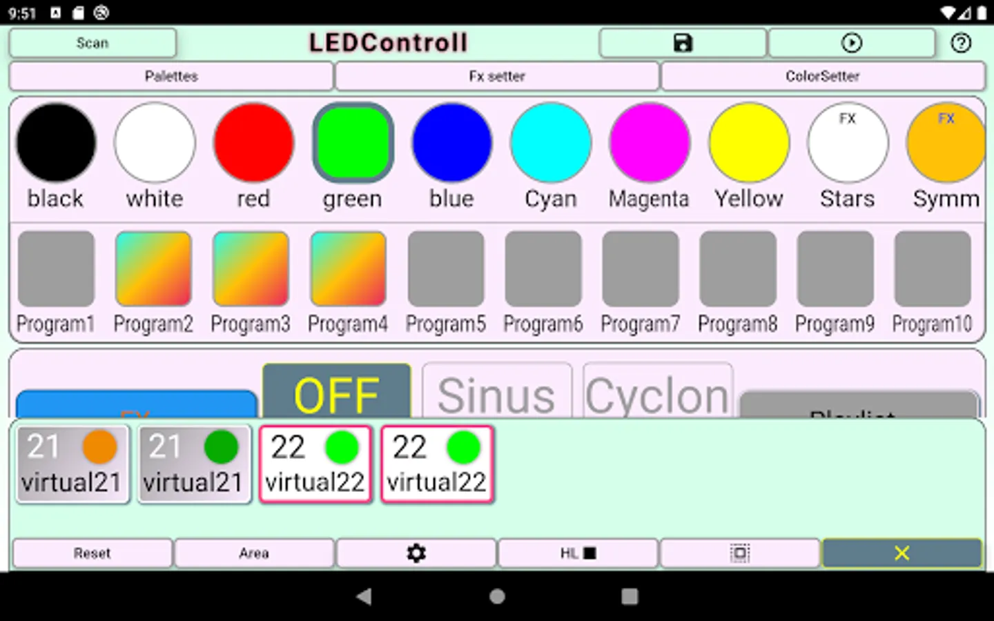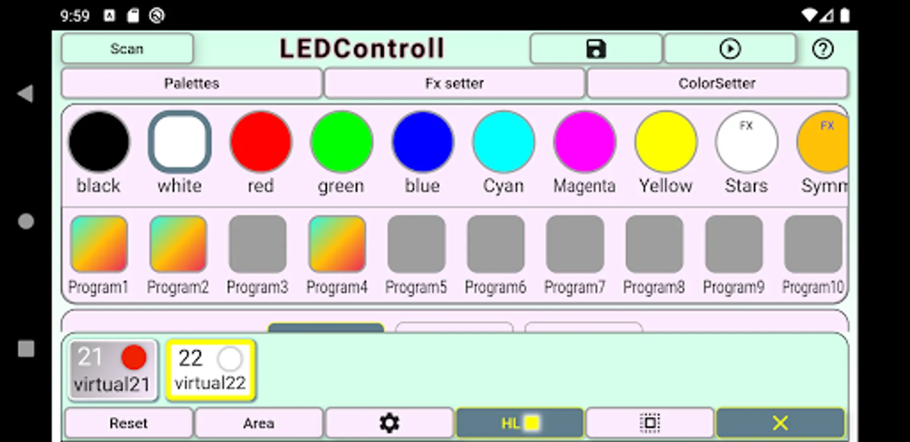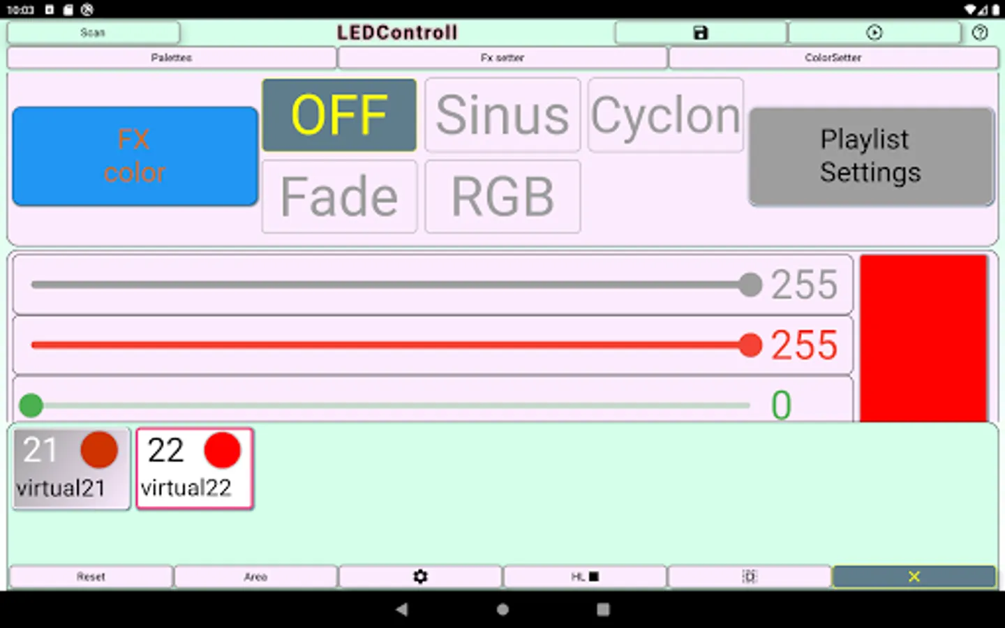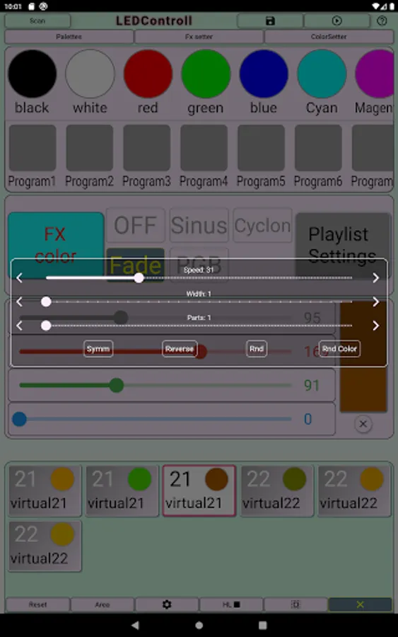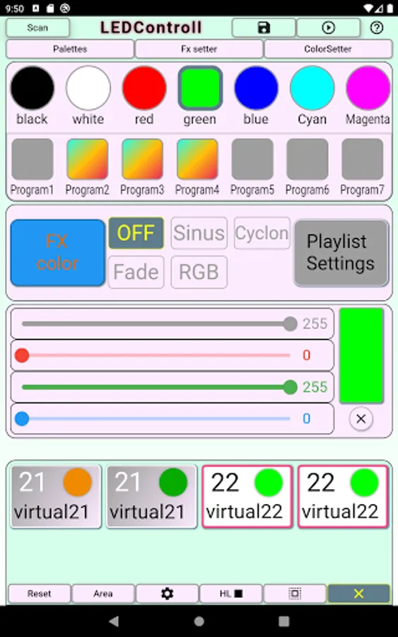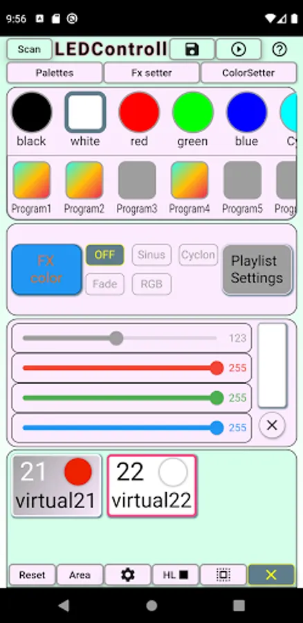 - store color combinations and effects in application for further reuse