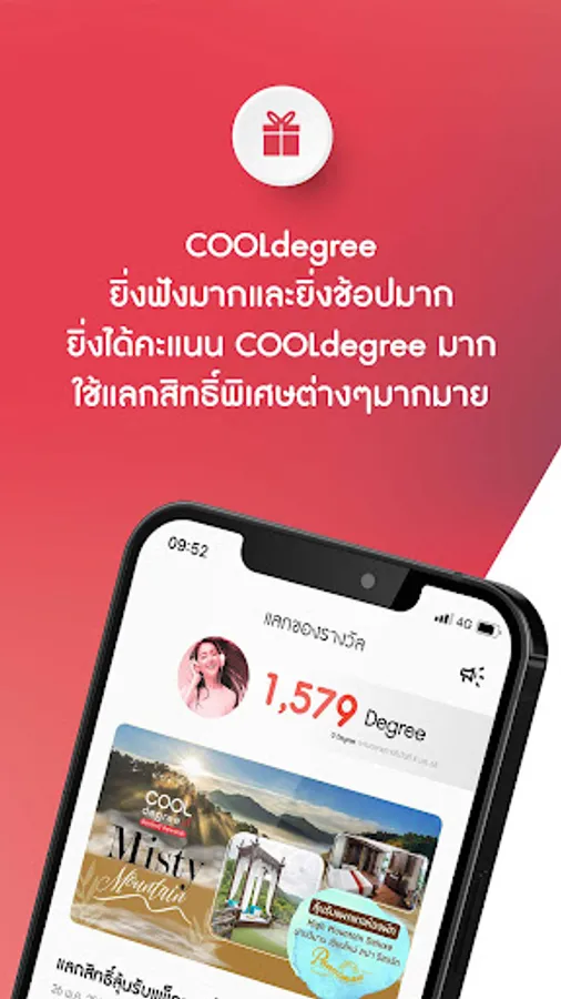 - COOLdegree ยิ่งฟังมากและยิ่งช้อปมาก ยิ่งได้คะแนน COOLdegree มาก ใช้แลกสิทธิ์พิเศษต่างๆมากมาย