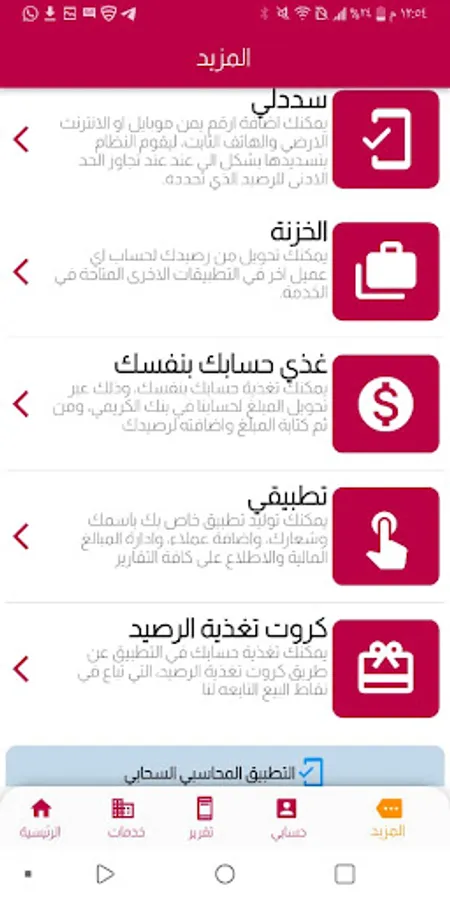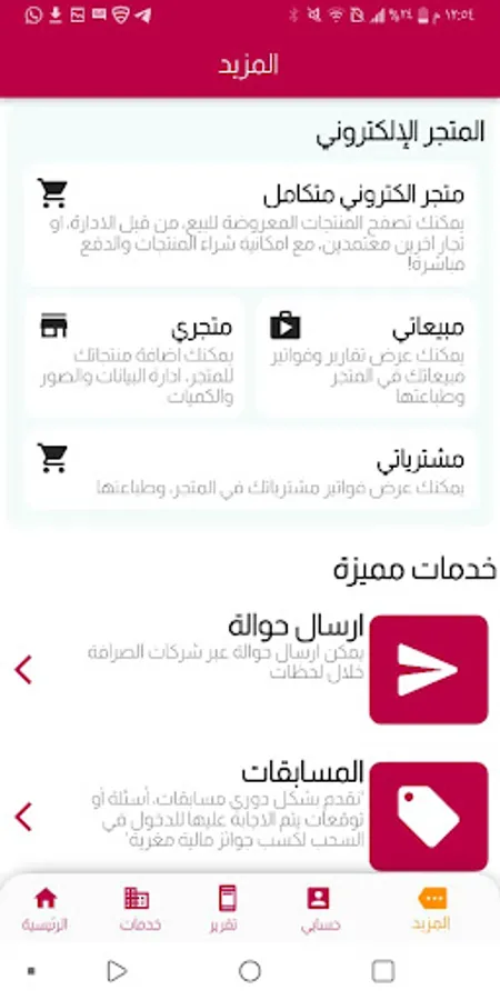 - The possibility of purchasing the various services provided by the application in the services section.