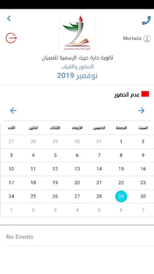 (Attendance and Absence): This feature allows parents to see the schedule of absence of their children during each month with the reason for the absence and justification