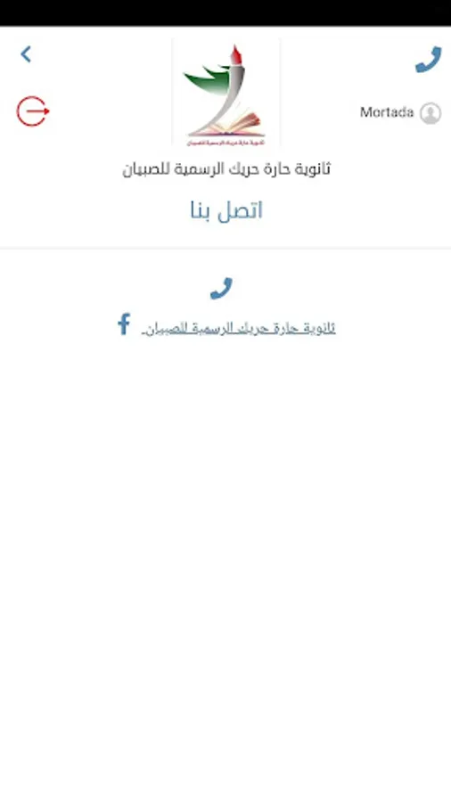 (Contact Us): Shows all the means of communication available with the school from the phone number, email and Facebook account
