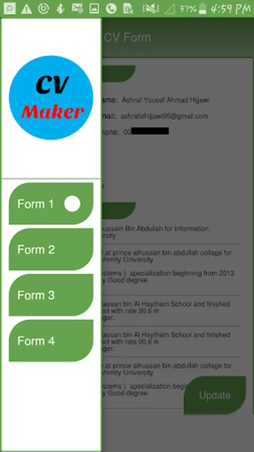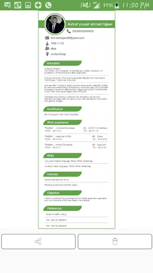 Dear Friend Welcome to the application of CV Maker, which provides a number of free templates for the creation of the CV and modified at any time professionally, and we would like to tell you dear friend that the work is based on the creation of a number of other designs CV and you can also support us with your comment and suggestion to enable us to The product improves in the way you like and meets your needs.