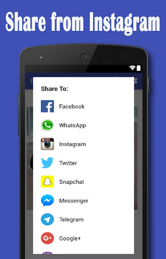 - Share Instagram photos and videos to Facebook, WhatsApp, Snapchat, Twitter,.... etc.