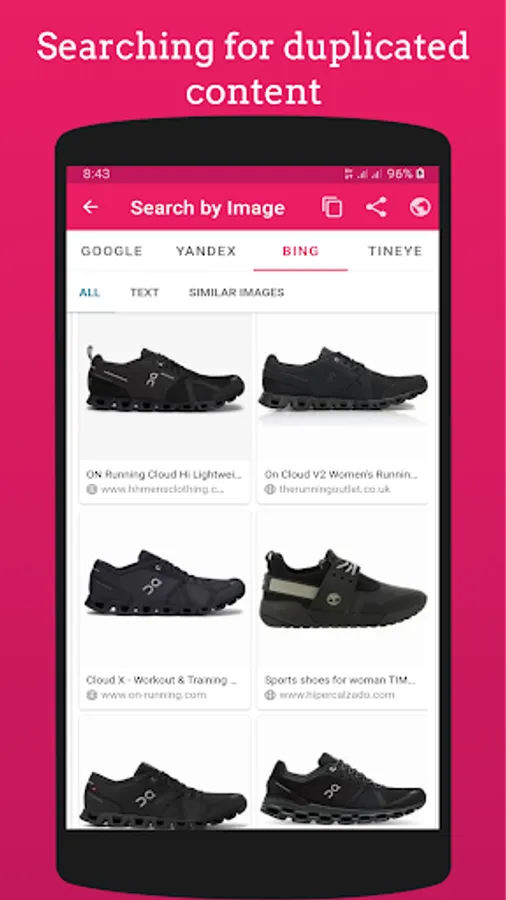 🌟 Support Google, Tineye, Bing and Yandex search engines.