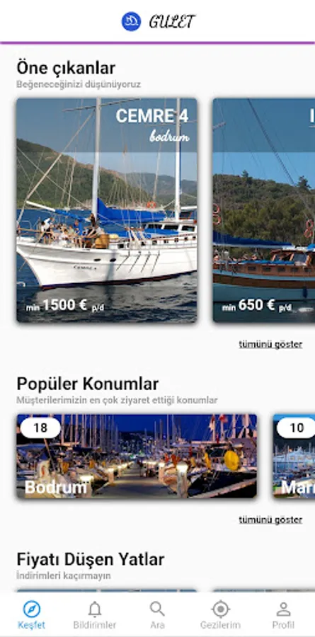 With this application, you will be able to charter the cruise boats, namely Turkish Gulet, Sailing and Motor Yachts, which are available for Sea Tourism (in Bodrum, Marmaris, Bozburun, Göcek and Fethiye regions) and make a unique Blue Cruise. After Turkey, we will launch this application all over the world.