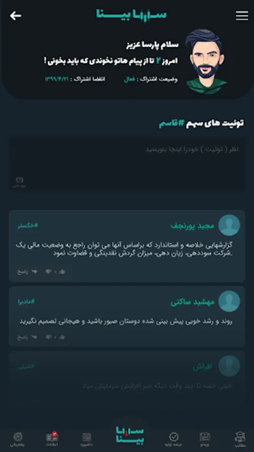 Complete reference application for learning materials in the field of stock exchange and permanent and online partner for analysis and consulting of stock exchange and OTC shares
