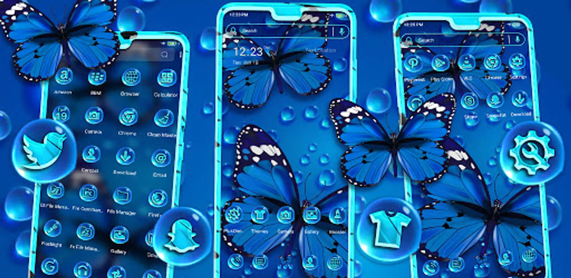 The Blue Butterfly Launcher theme is an Android mobile theme with amazing effects, beautifully applied icons, and Beautiful wallpaper. This theme is suitable for most Android models. Install the Blue Butterfly launcher theme and experience the cool and amazing home screen to make your phone cool.