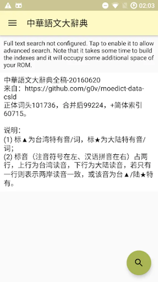 The entry in this app is derived from https://github.com/g0v/moedict-data-csld, with a total of 101736 in the body, 99224 in the merge, and 60715 in the simplified index.