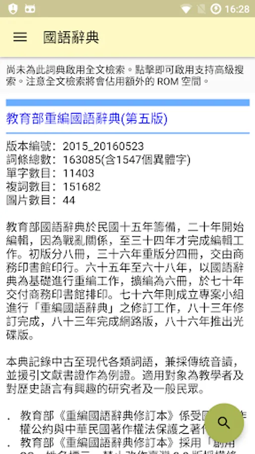 - The information comes from the Ministry of Education's re-editing of the revised Chinese-language dictionary. The content is complete and the total number of entries is 163085.