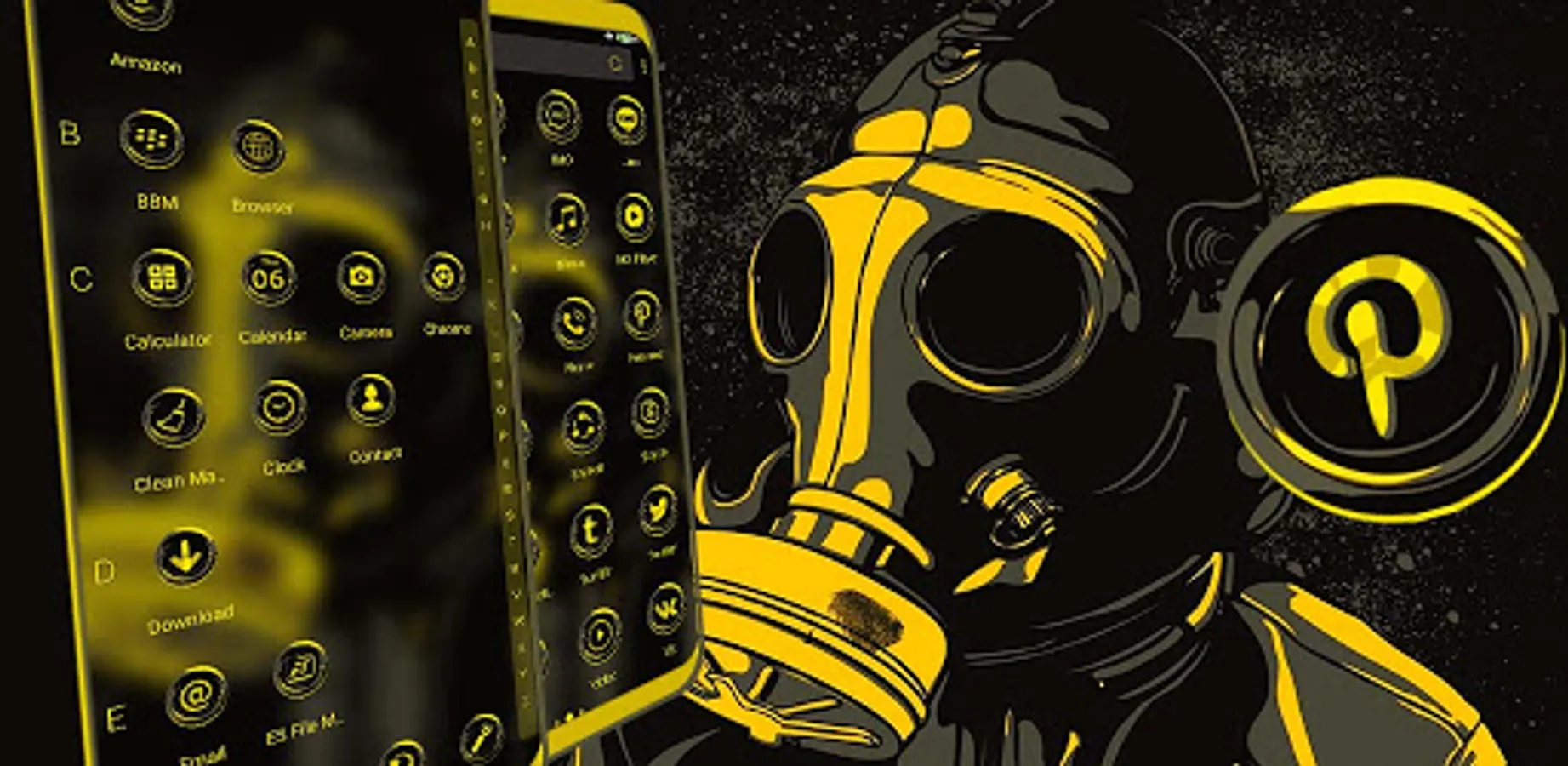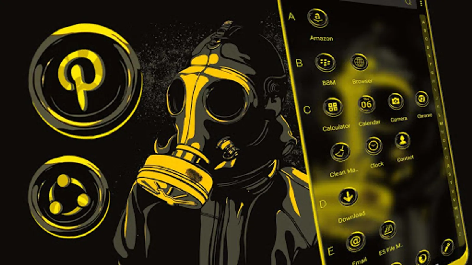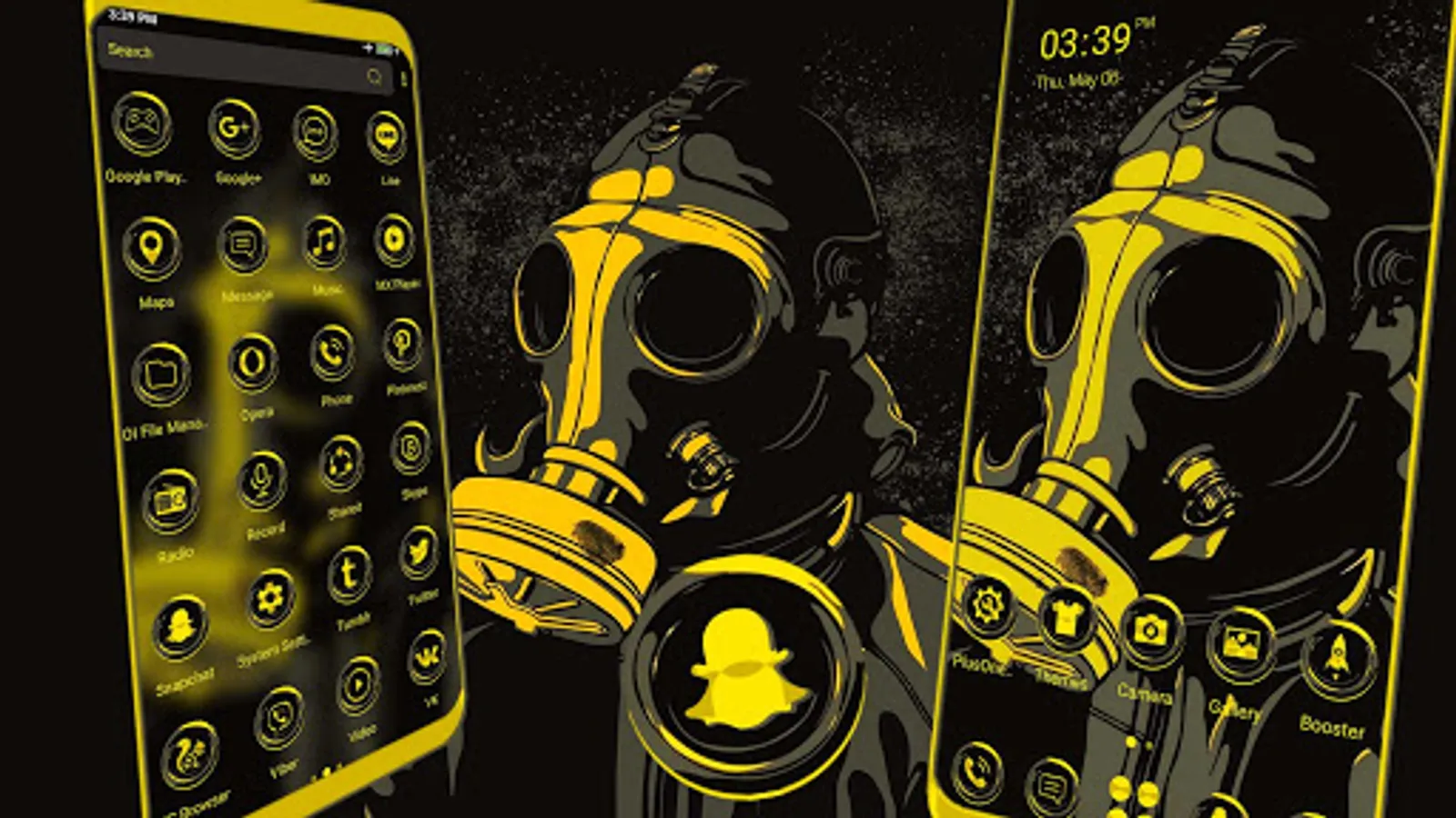 The main features of the Gas Mask Boy launcher theme