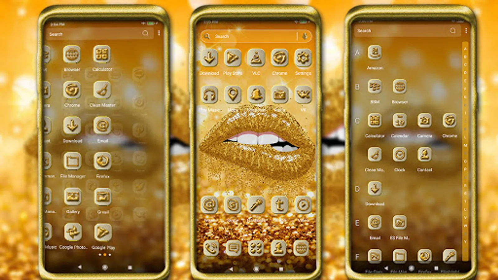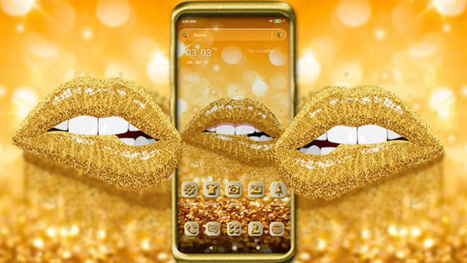 Go ahead and download the Gold Glitter Lips theme on your phone. If you are tired of the boring screen of your phone, please enjoy this theme!