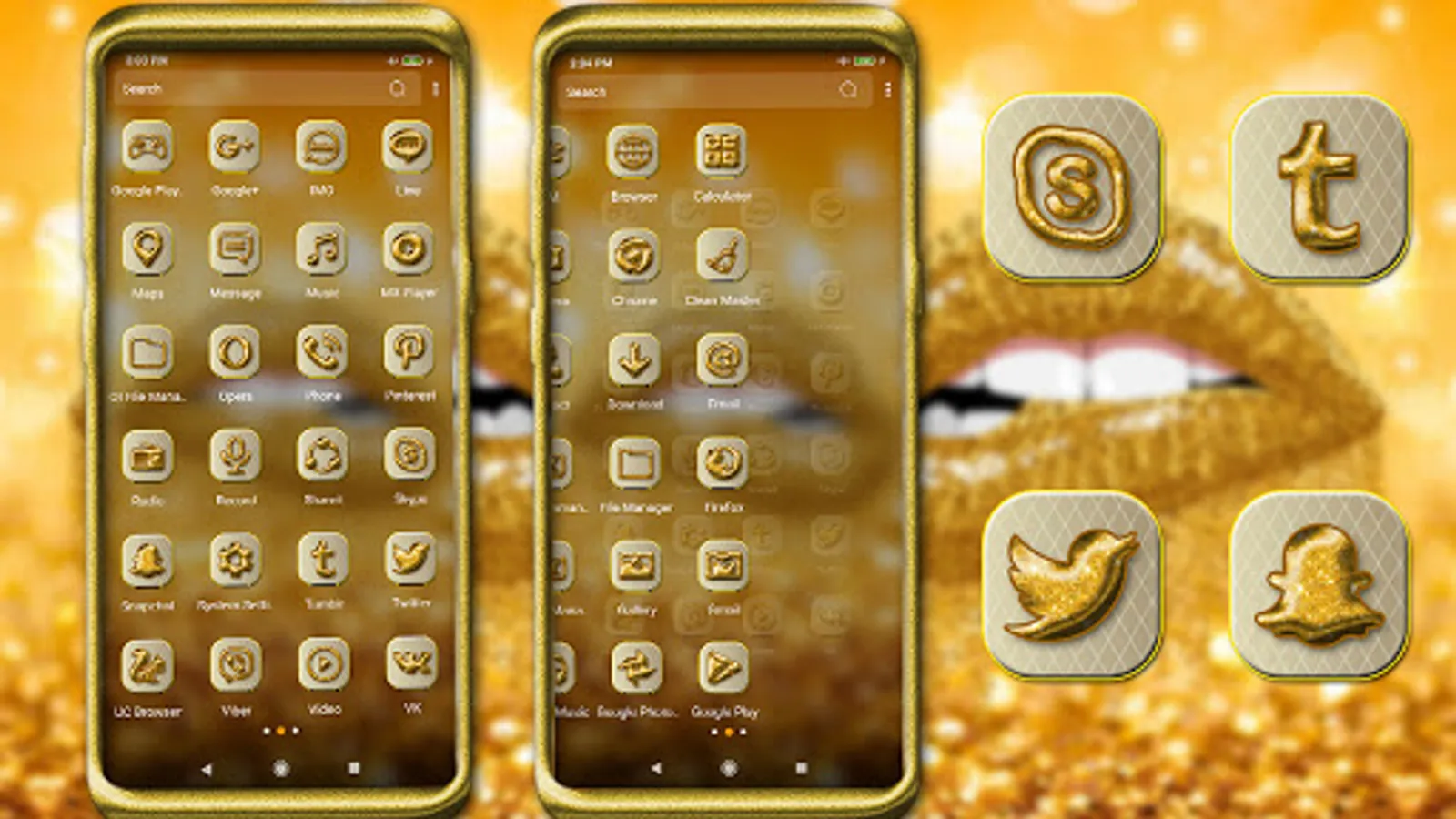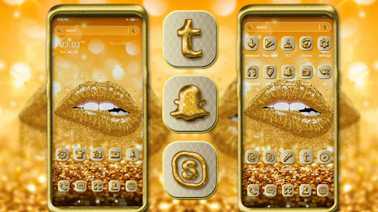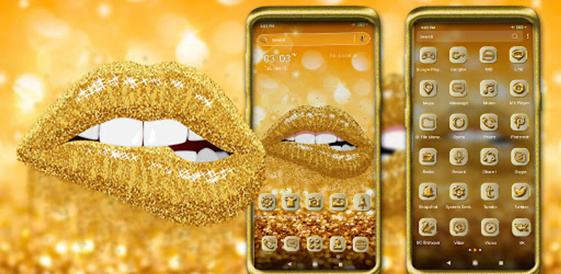 The main features of the Gold Glitter Lips launcher theme