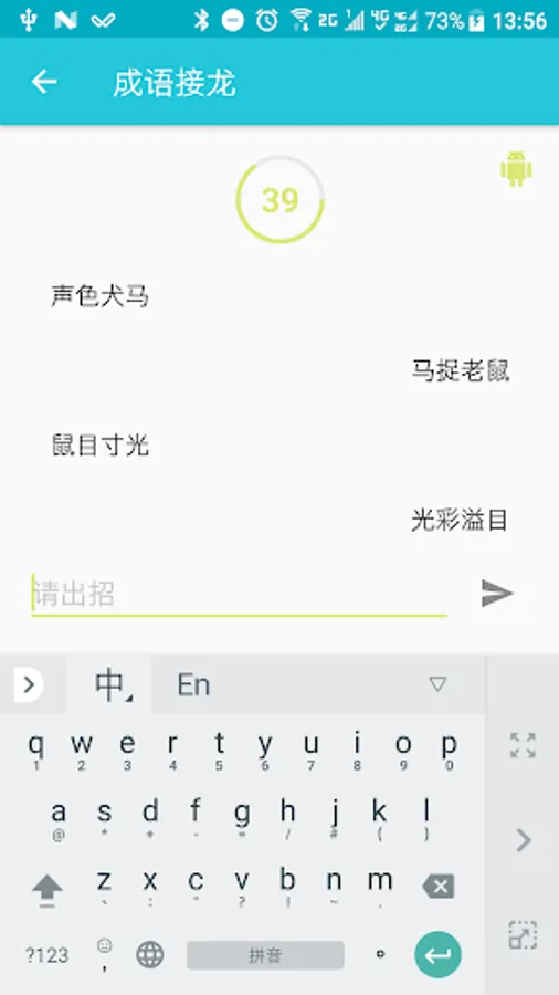 - A dict where you can play the game idioms chain with your Android Robot 😁