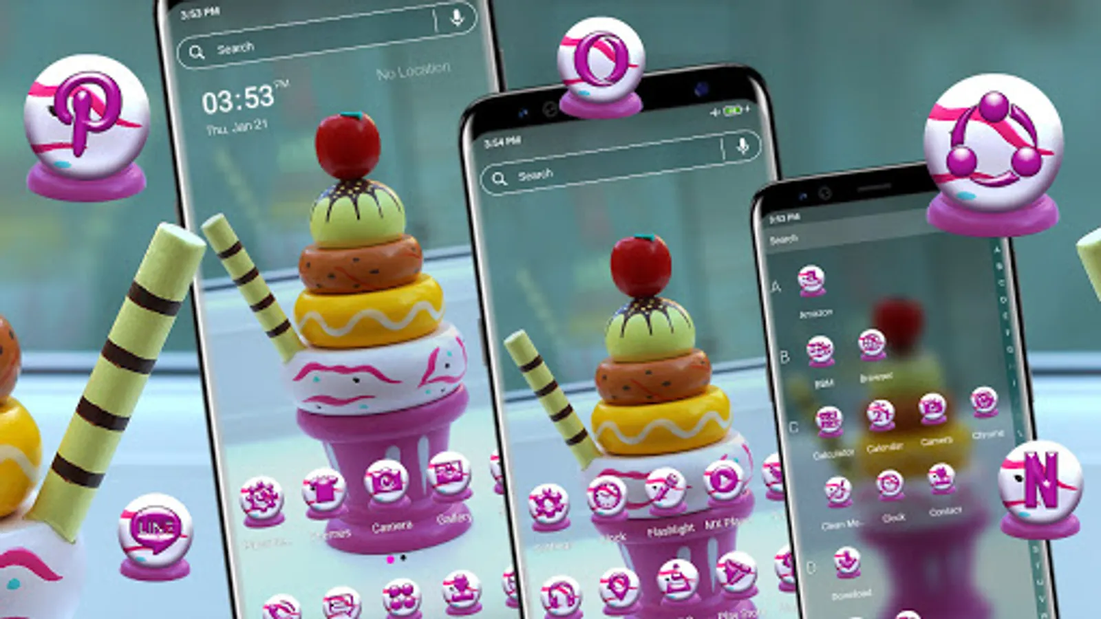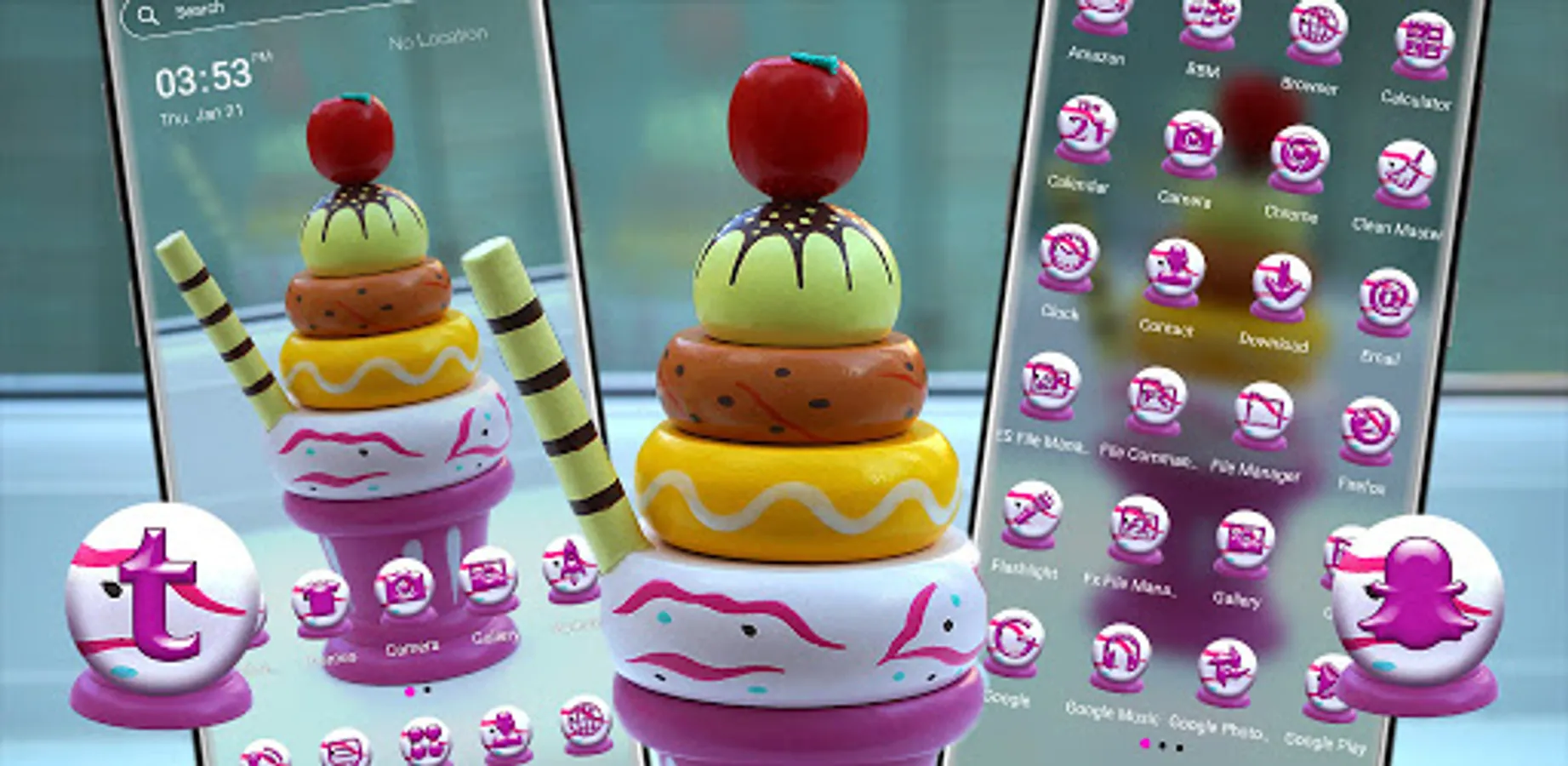 The Multicolor Ice Cream Launcher theme is an Android mobile theme with amazing effects, beautifully applied icons, and Ice Cream wallpaper. This theme is suitable for most Android models. Install the Multicolor Ice Cream launcher theme and experience the cool and amazing home screen to make your phone cool.