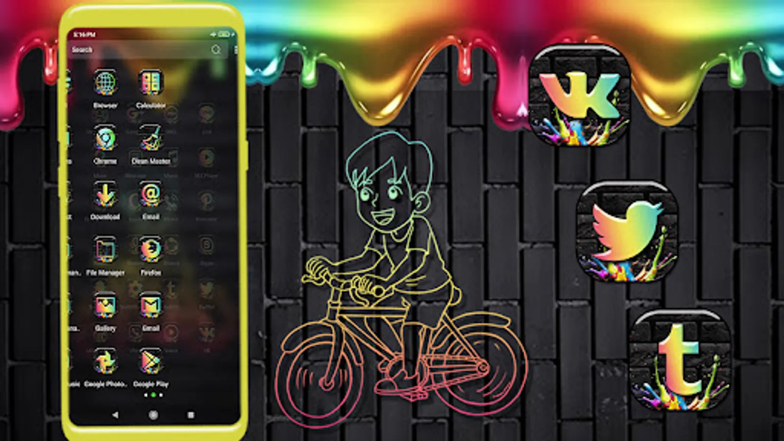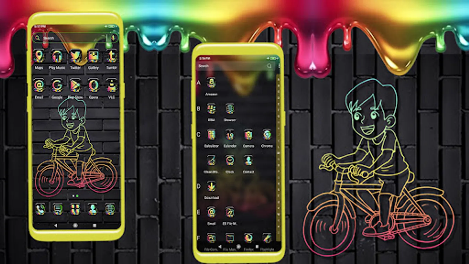 Go ahead and download the Neon Bicycle theme on your phone. If you are tired of the boring screen of your phone, please enjoy this theme!