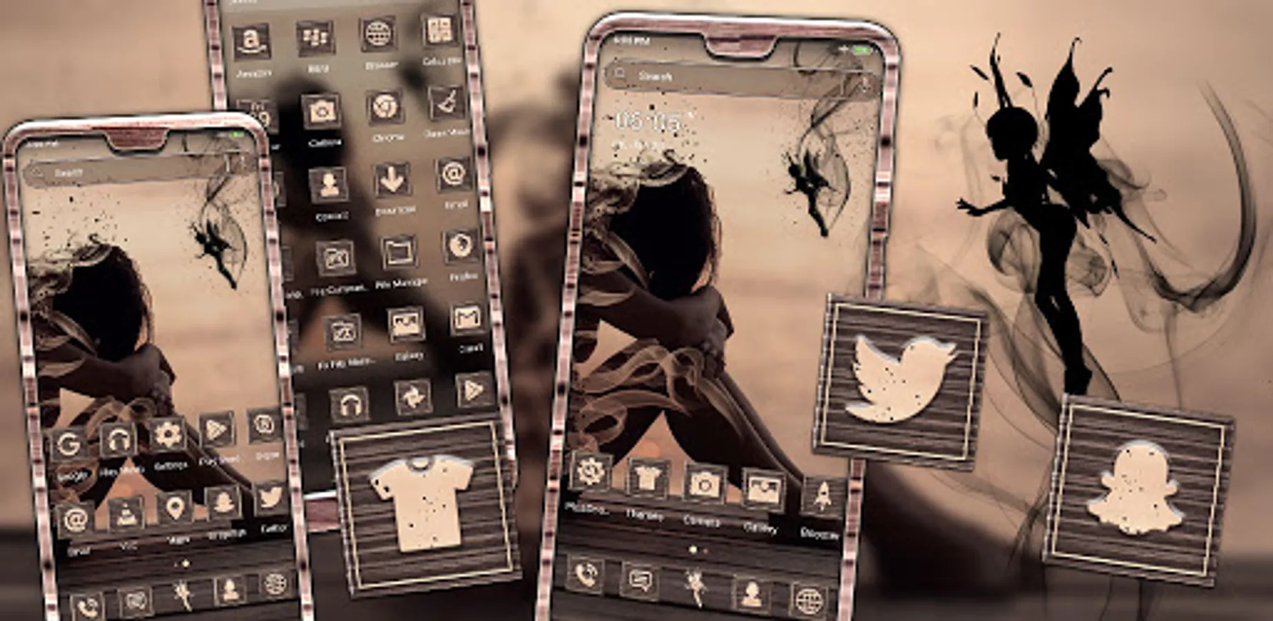 The Sad Smoke Girl Fairy Launcher theme is an Android mobile theme with amazing effects, beautifully applied icons, and Girly wallpaper. This theme is suitable for most Android models. Install the Smoke Girl Fairy launcher theme and experience the cool and amazing home screen to make your phone cool.