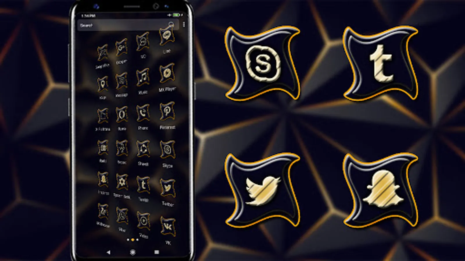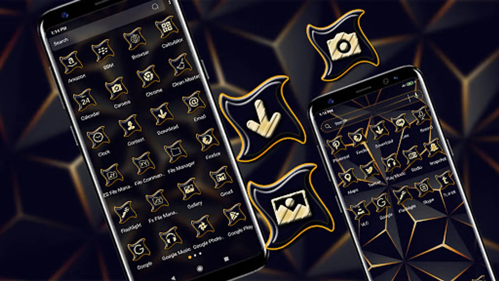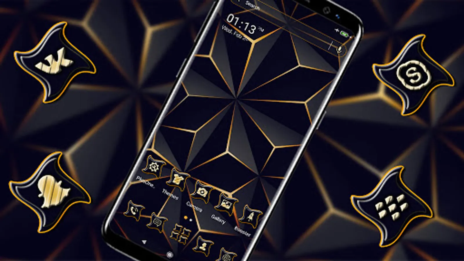 The 3D Triangle Black Launcher theme is an Android mobile theme with amazing effects, beautifully applied icons, and Black Pattern wallpaper. This theme is suitable for most Android models. Install the 3D Triangle Black launcher theme and experience the cool and amazing home screen to make your phone cool.