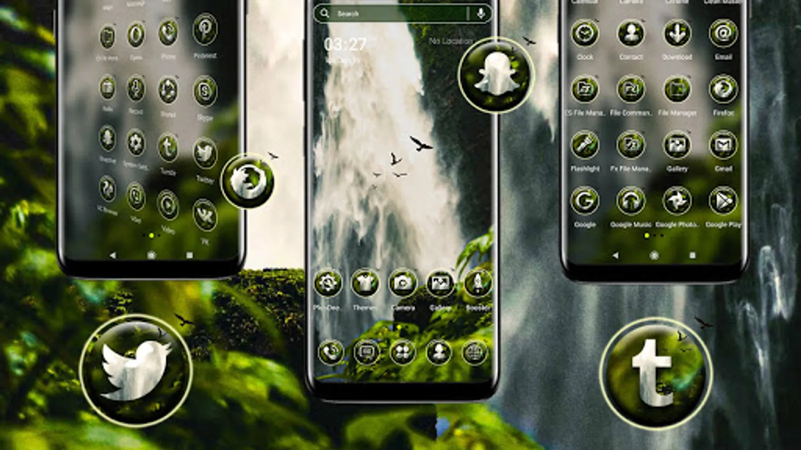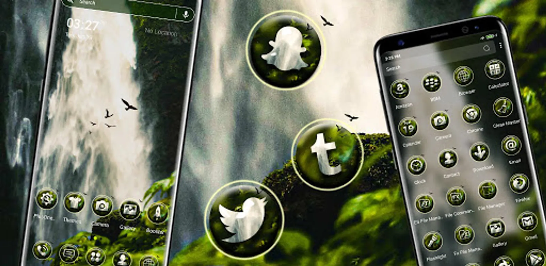 The Waterfall Launcher theme is an Android mobile theme with amazing effects, beautifully applied icons, and Nature wallpaper. This theme is suitable for most Android models. Install the Waterfall launcher theme and experience the cool and amazing home screen to make your phone cool.