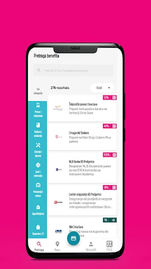 The European Youth Card (EYCA) is the only official and free benefit card for young people, which allows all Montenegrin citizens aged 13-29 to use over 270 discounts in our country and over 70 thousand discounts throughout Europe.