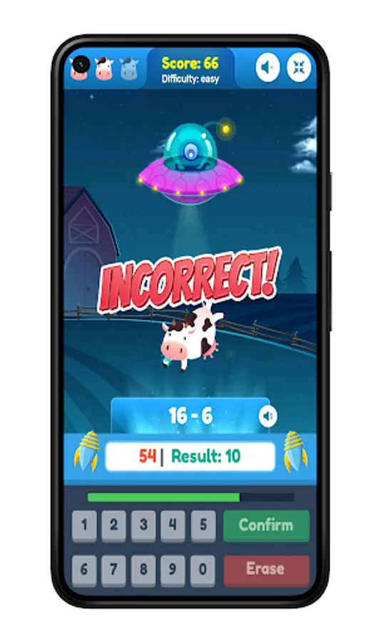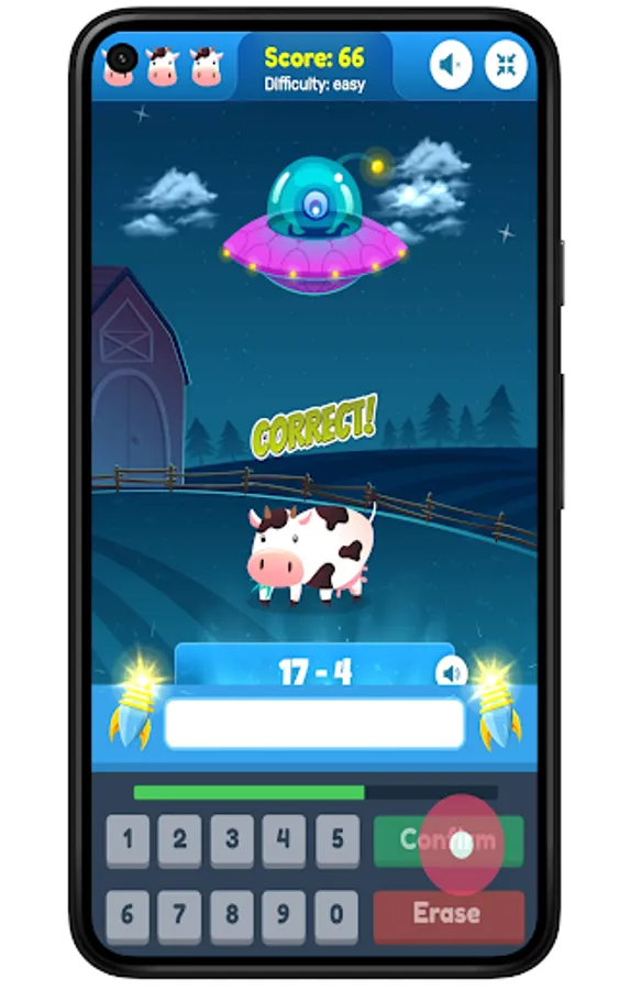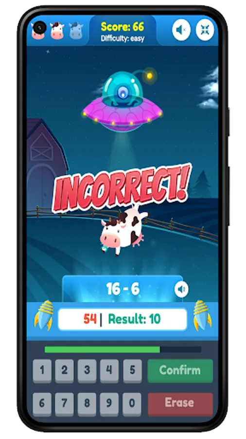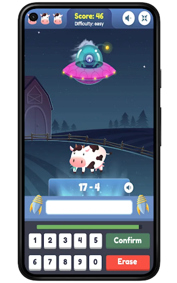 Get an answer wrong or let the timer run out and your happy cow will get beamed up by the aliens!