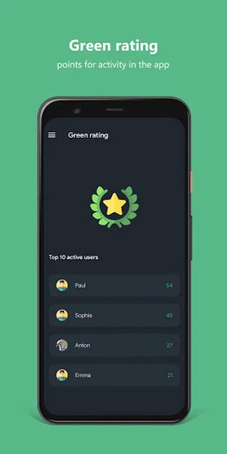 Activity in the application is rewarded with rating points, the ten most active users are always honorably noted in this section