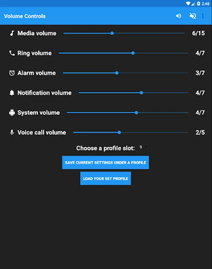 Additionally, you can save multiple profiles which you can load whenever you need it. Both saving and loading can be done through the app or through a homescreen widget.