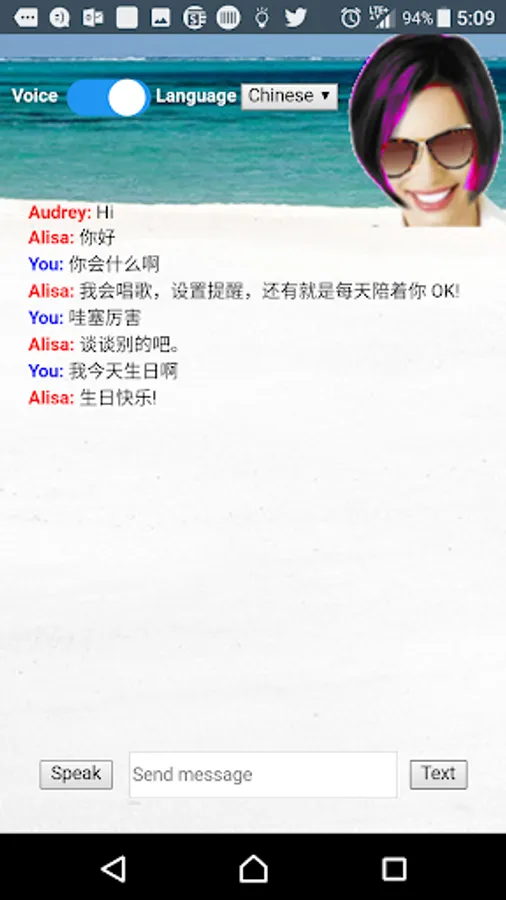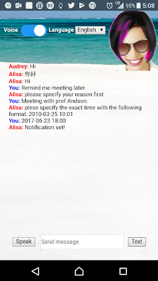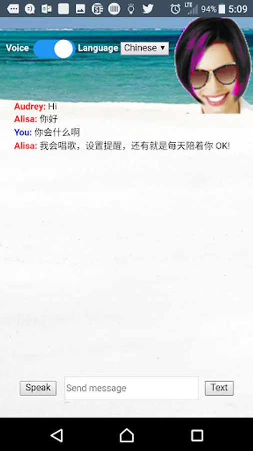 Alisa is a nice assistant, who can speak Chinese and English. She can make notification and sing. Also she is a nice talker.