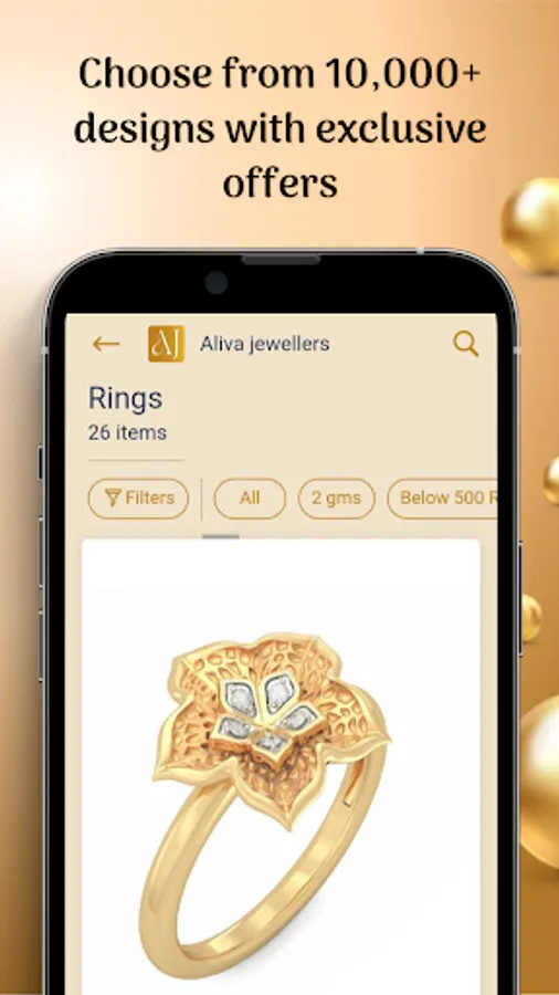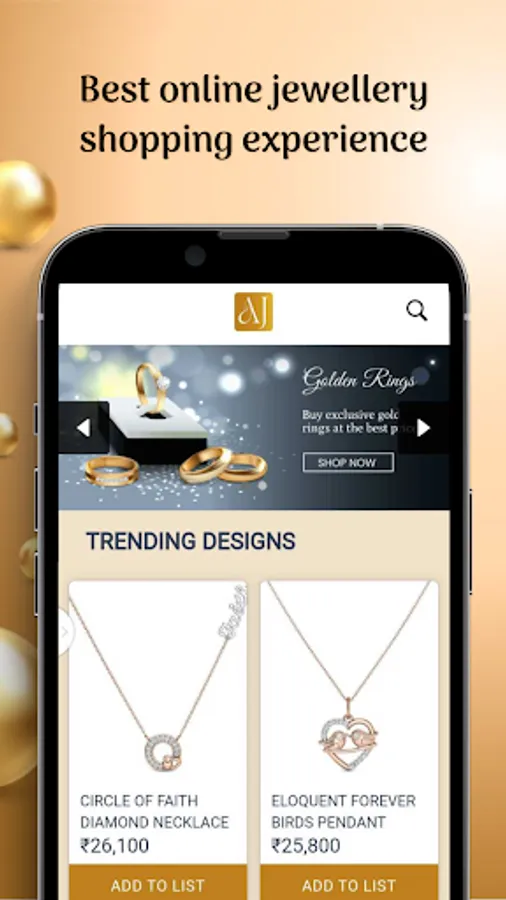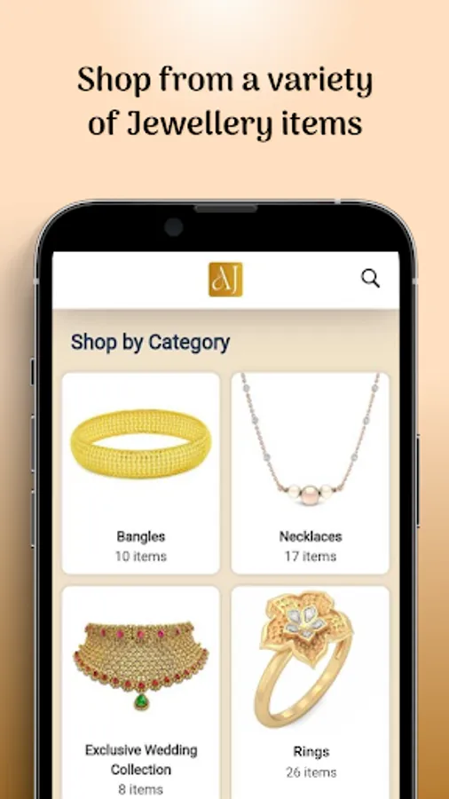 Shop for a wide variety of jewelery items such as rings, necklaces, bangles, wedding collections and earrings. Shop for gorgeous designs in gold, diamond and ruby collections across our offerings. Browse our exclusive wedding collections and get quotes. View the products cataloged in different categories to ease your shopping experience. Check out our most loved products with ease. Have queries? Easily connect with us over WhatsApp and let us make your shopping experience memorable