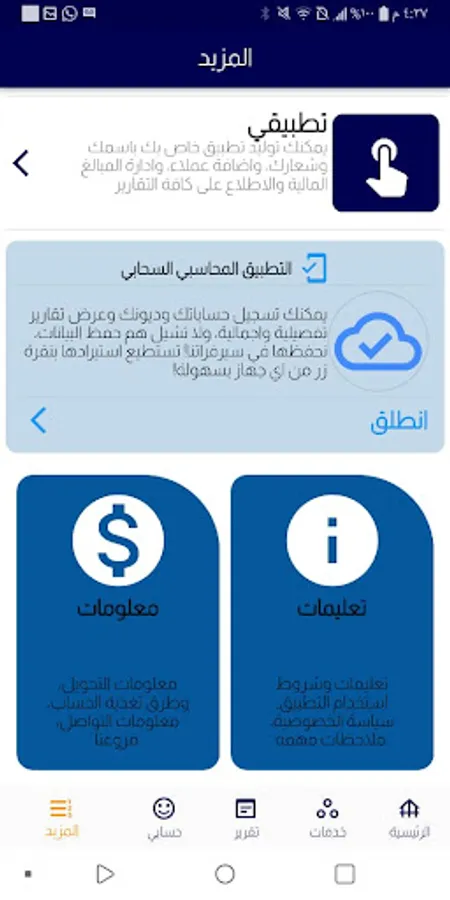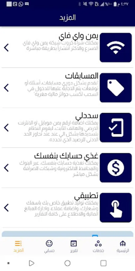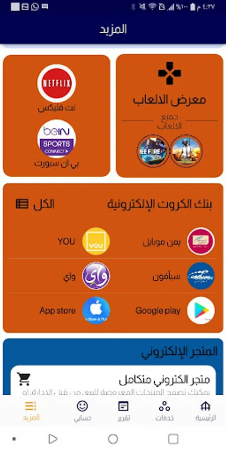Al-Khalil for mobile services and electronic payment services. The application of the payment gateway, payment and immediate shipment to all the different networks. The application works with different features and many diverse designs in the application, through which the customer can easily navigate between all the different services provided by the application, including: