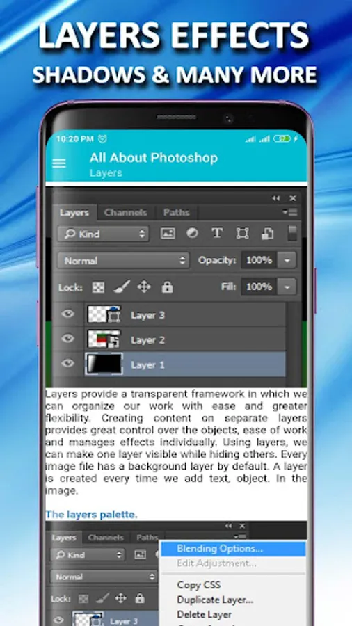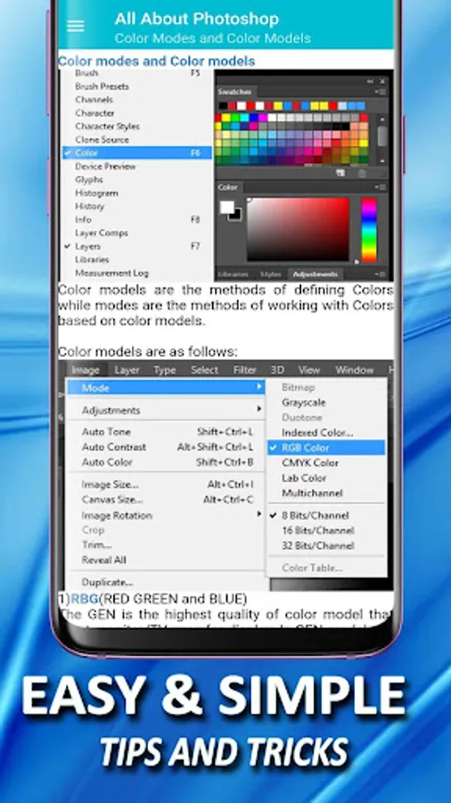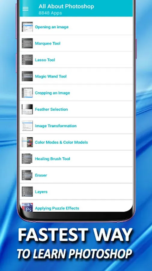 Photoshop tutorial app guides you from basics to advanced photo editing. This photoshop course app is made for beginners as well as an expert to help you learn to edit or create photos using photoshop cs and photoshop cc version of Adobe Photoshop. We have explained every tool in simple English with images.