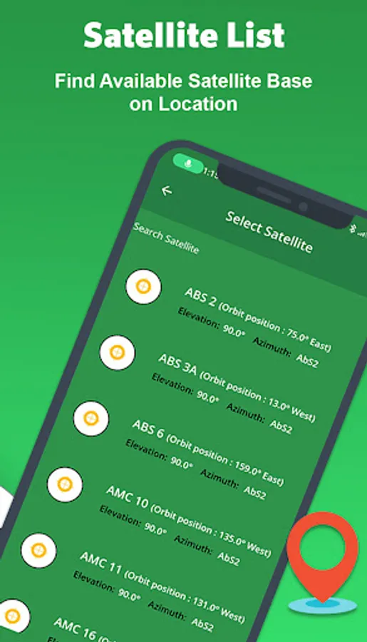 Satellite finder can find your present location on the map and shows you the selected satellite direction on the compass helping you to align dish