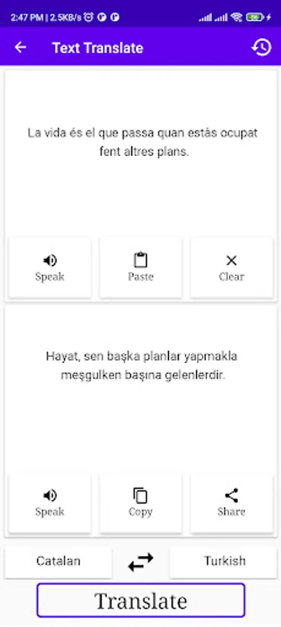 * Translate Text Catalan To Turkish And Turkish To Catalan Translator.