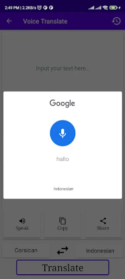 * Text to Speech Translation - Speak to Text For Corsican Or Indonesian