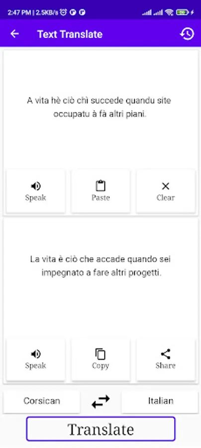* Translate Text Corsican To Italian And Italian To Corsican Translator.