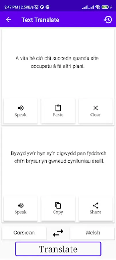 Corsican to Welsh Translator to translate text translate,word translate,paragraph translate and also full Sentences translate.this application also used for Corsican to Welsh translator and Welsh to Corsican translate also for word,text and full sentences.