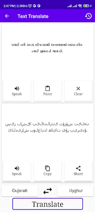 * Translate Text Gujarati To Uyghur And Uyghur To Gujarati Translator.